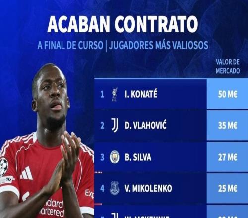 北京時間2月20日,德轉(zhuǎn)列出了現(xiàn)有合同今年6月到期德轉(zhuǎn)身價最高的10名球員,利物浦中衛(wèi)科納特以5000萬歐元排名第...
