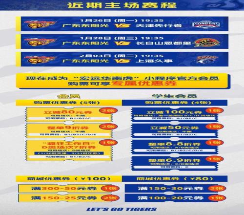 1月26日前瞻I華南虎繼續(xù)主場(chǎng)征程,迎戰(zhàn)天津