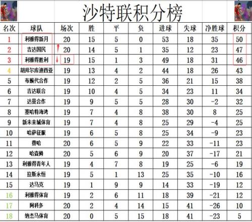 積分榜方面,難怪C羅要郁悶,本澤馬一來就造4球,利雅得新月狂勝,他們暫時又將和利雅得勝利的差距拉大到4分。吉達國民先賽贏球后,1分優(yōu)勢將利雅得勝利擠到第3的位置。