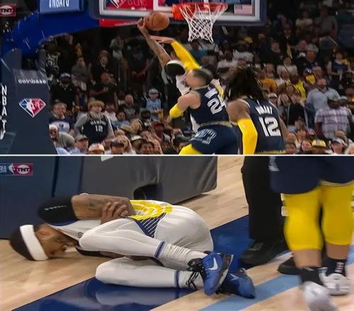 當(dāng)勇士隊(duì)的小佩頓快攻上籃起跳時(shí),狄龍從其身后追防,在右手的揮擊下,小佩頓失去平衡空中墜下,并且賽季報(bào)銷。