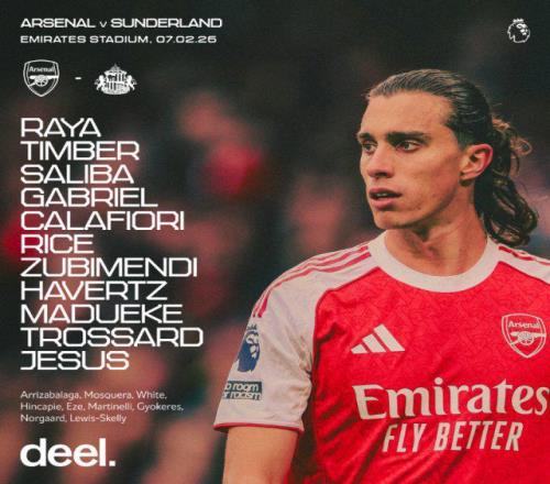 英超第25輪,阿森納主場(chǎng)對(duì)陣桑德蘭,賽前阿森納首發(fā)陣容出爐,具體名單如下: 阿森納首發(fā):拉亞 / 廷伯、薩利巴、加布里埃爾、卡拉菲奧里 / 賴斯、蘇維門迪、哈弗茨 / 馬杜埃凱、熱蘇斯、特羅薩爾