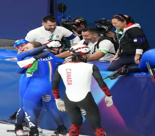 當(dāng)日是短道速滑開賽首日,東道主隊斗志昂揚(yáng),在2000米混合接力四分之一決賽、半決賽中發(fā)揮出色。決賽中,面對衛(wèi)冕冠軍中國隊和傳統(tǒng)強(qiáng)隊加拿大隊,意大利隊毫不畏懼,在一度處于領(lǐng)滑位置的中國隊略顯猶豫時實現(xiàn)超越,以2分39秒019的成績摘得金牌。