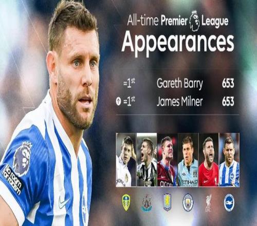 653場(chǎng),40歲老將米爾納追平英超歷史出場(chǎng)紀(jì)錄