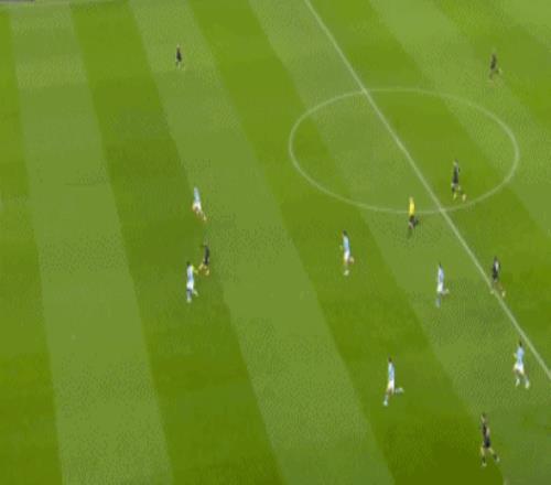 塞門約再度建功,反擊中左路帶球推進(jìn)到前場,隨后將球交給了前插的奧賴?yán)笳咝〗嵌绕崎T得分,曼城擴大優(yōu)勢,2-0!