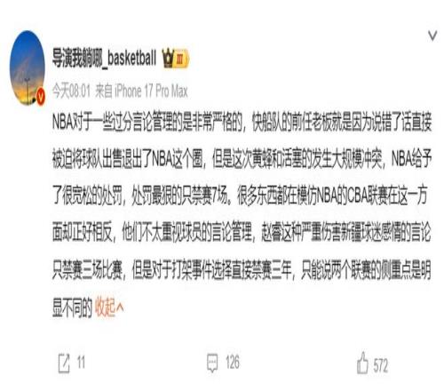 網(wǎng)友表示:破壞民族大團(tuán)結(jié),禁賽三場(chǎng),吃禁藥三個(gè)月,打個(gè)破架三年,籃協(xié)的評(píng)判標(biāo)準(zhǔn)真的是讓人難以理解。