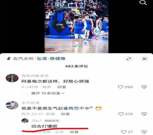 有不少網(wǎng)友還在趙睿的社交平臺(tái)上留言,面對(duì)屬地為IP地址為新疆的球迷留言稱(chēng):北京爭(zhēng)冠無(wú)望,而趙睿直接回復(fù):“新疆邊上待一待,自己人民都沒(méi)有主觀思想,都是別人帶著跑。”另外一名新疆球迷提到他罰球不中,趙睿更是回懟:“回去打馕去”。