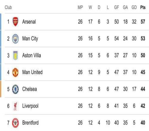 最終,阿森納客場(chǎng)1比1布倫特福德,只收獲1分,領(lǐng)跑優(yōu)勢(shì)被曼城縮減成4分。