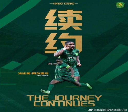 經(jīng)友好協(xié)商一致,北京國安足球俱樂部近期已與球員法比奧正式完成續(xù)約。
