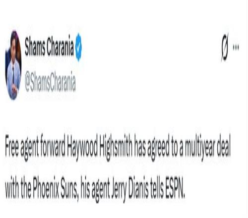 北京時(shí)間2月15日,據(jù)名記Shams報(bào)道,太陽(yáng)隊(duì)將與自由球員前鋒海伍德-海史密斯簽下一份多年合同。太陽(yáng)隊(duì)記約翰-甘巴多羅證實(shí)了這一消息,并表示海史密斯合同的第二年為部分保障。