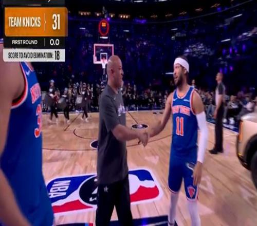 尼克斯隊(duì)第四位登場,布倫森、唐斯攜手隊(duì)史名宿阿蘭-休斯敦出戰(zhàn),他們前幾個(gè)點(diǎn)表現(xiàn)出色連續(xù)得分,右側(cè)弧頂接連打鐵,中路唐斯命中,底角中距離阿蘭-休斯敦命中,中圈四分點(diǎn)唐斯與布倫森連續(xù)進(jìn)球,尼克斯隊(duì)得到31分,攜手24分的卡梅隆隊(duì)晉級(jí)決賽。