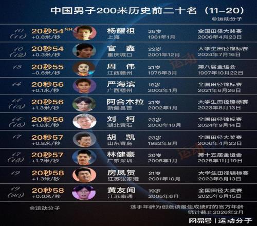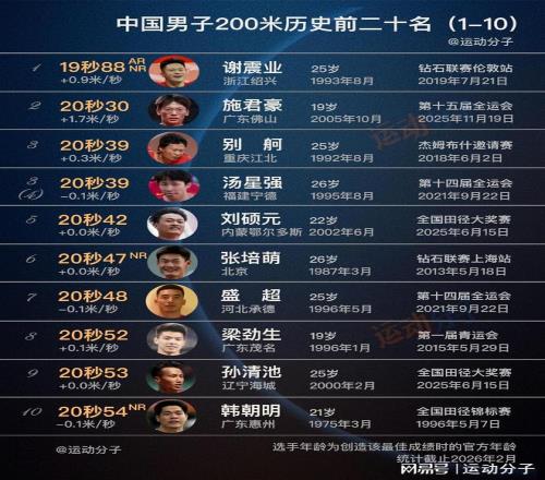 謝震業(yè)斷檔領(lǐng)銜,盤(pán)點(diǎn)中國(guó)男子200米歷史最快20人
