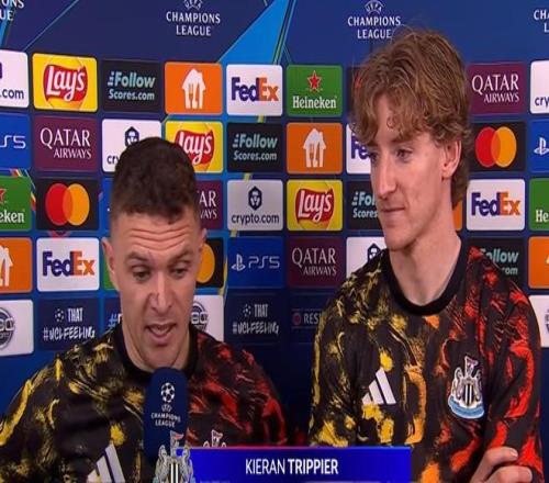 在客場6-1戰(zhàn)勝卡拉巴赫的賽后,紐卡后衛(wèi)特里皮爾和本場比賽上演大四喜的戈登接受了CBS體育的采訪。在采訪中,他們談到了因搶罰點球發(fā)生爭執(zhí)一事。