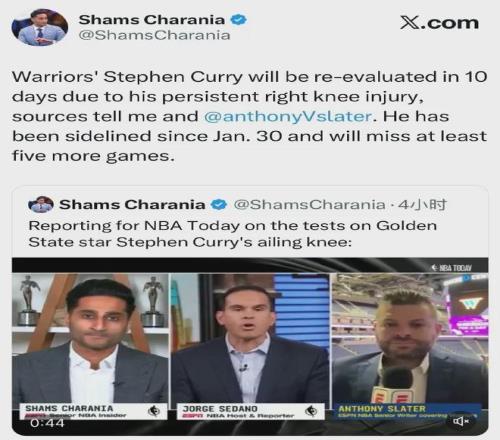 庫里十天后才會復診他的跑步膝,這意味著將至少再缺席5場比賽,而其已休戰(zhàn)了17場比賽......