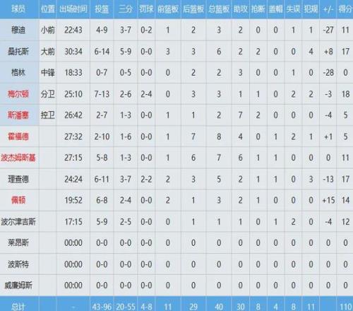 追夢格林的數(shù)據(jù)相當瘋狂,運動戰(zhàn)七投全丟且沒有罰球,得分掛零只收獲2板3助,正負值-28全場最低。