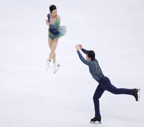 2月16日,中國選手隋文靜(左)/韓聰在雙人滑自由滑比賽中。新華社記者 陳益宸 攝